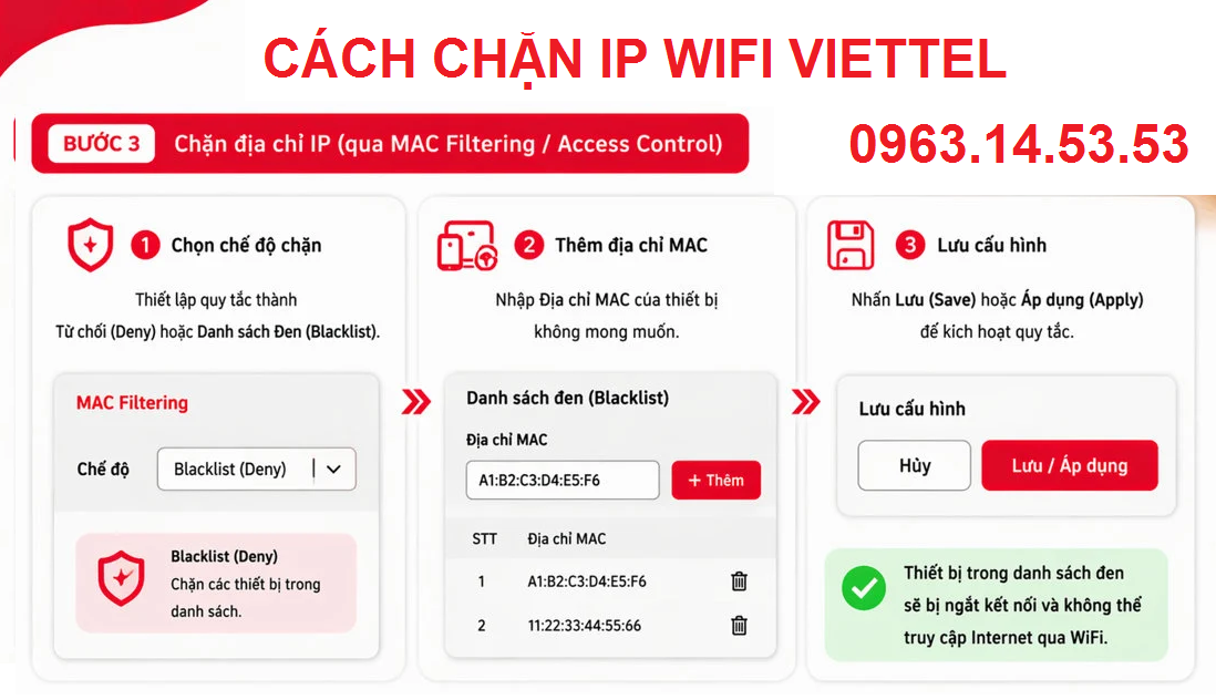 - Ưu tiên chặn theo MAC nếu router hỗ trợ.