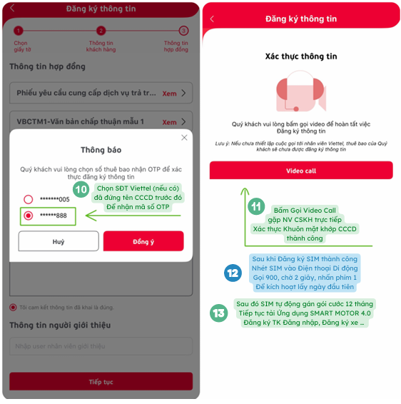 Bước 6: Chọn số điện thoại Viettel khác đã dùng cho CCCD này và Gọi Video Call với nhân viên Viettel và làm theo hướng dẫn