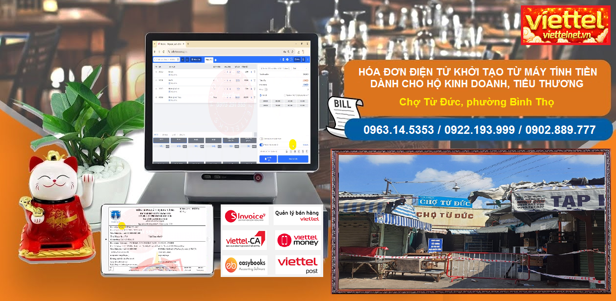 Hotline đăng ký triển khai Hóa đơn điện tử tận nơi, quý khách cung cấp địa chỉ và tên quầy hàng tại Chợ Từ Đức tới Hotline 0963.14.5353 / 0922.193.999 / 0902.889.777 để được Viettel gần nhất tới tận nơi lắp đặt