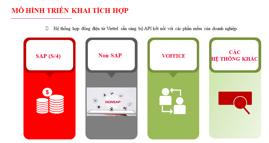 Hệ thống hợp đồng điện tử Viettel có thể tích hợp với nhiều hệ thống phần mềm khác của doanh nghiệp thông qua API.